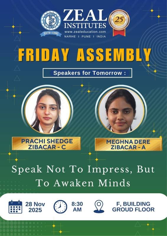 The institute conducts a Friday Assembly every week as a holistic initiative to enhance discipline, values, and communication skills among students. The assembly begins with the Saraswati Pooja, invoking the blessings of Goddess Saraswati for knowledge, wisdom, and academic excellence. Faculty members and students collectively participate in this prayer ritual, creating a positive and respectful learning environment.